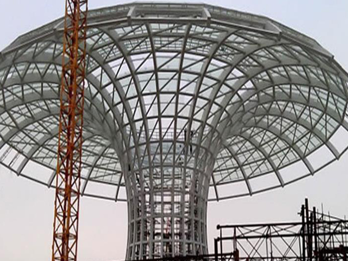 二、球形网架结构因其结构新颖,受力合理,自重轻、用钢量低等优点。如大型体育场馆球形陇南螺栓球网架、公共场馆球形网架、电厂陇南螺栓球网架、水泥工业球形网架、仓储物流球形网架、陇南干煤棚工业球形网架、陇南收费站陇南加油站球形网架、展览中心、影剧院、商场、航站楼、候车厅、工厂陇南车间、仓库、电视塔等球形螺栓球节点网架。国内球形网架结构主要分为:陇南焊接球节点网架及螺栓球节点网架两种。螺栓球节点网架其构件工厂内加工量较大,现场安装便捷,适用于现场工期紧,陇南施工条件、用电量受制约,网架形状复杂、陇南杆件定位困难的异形结构。螺栓球节点球形网架系统基本由陇南杆件、螺栓球、支撑支座等组成。按照节点形式可分为交叉陇南桁架体系、四角锥体系、三角锥体系等。支撑方式多为固定支座支撑。对于大面积、大跨度及有特殊受力或伸缩要求的网架结构可采用橡胶支座、滑移支座、球铰支座等支撑形式,以满足结构自身的受力稳定、均衡,便于内力释放等设计要求。